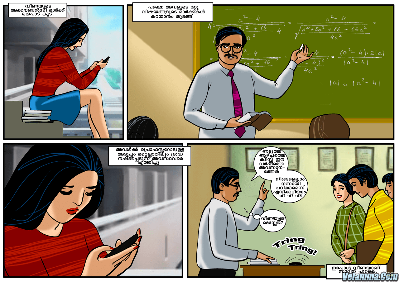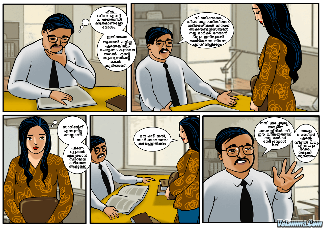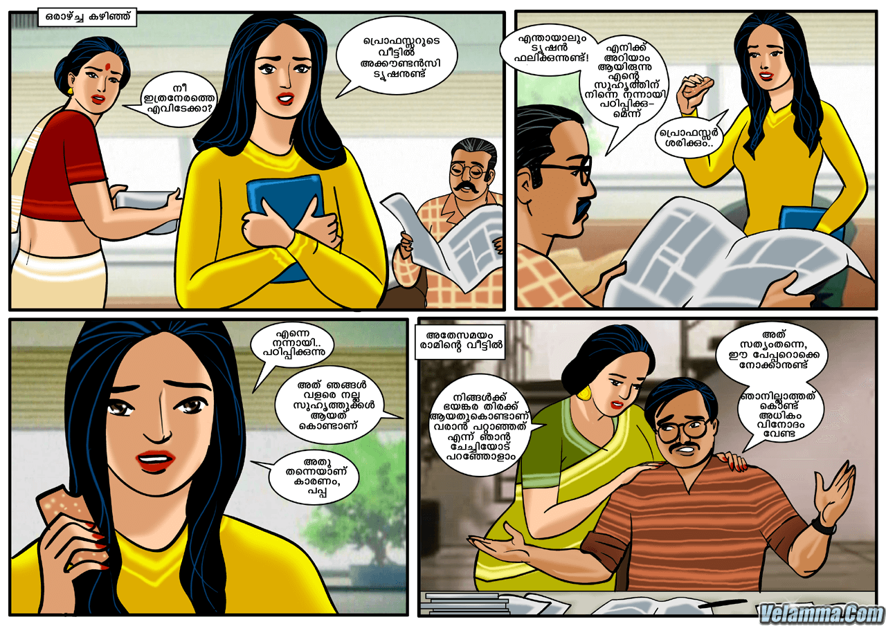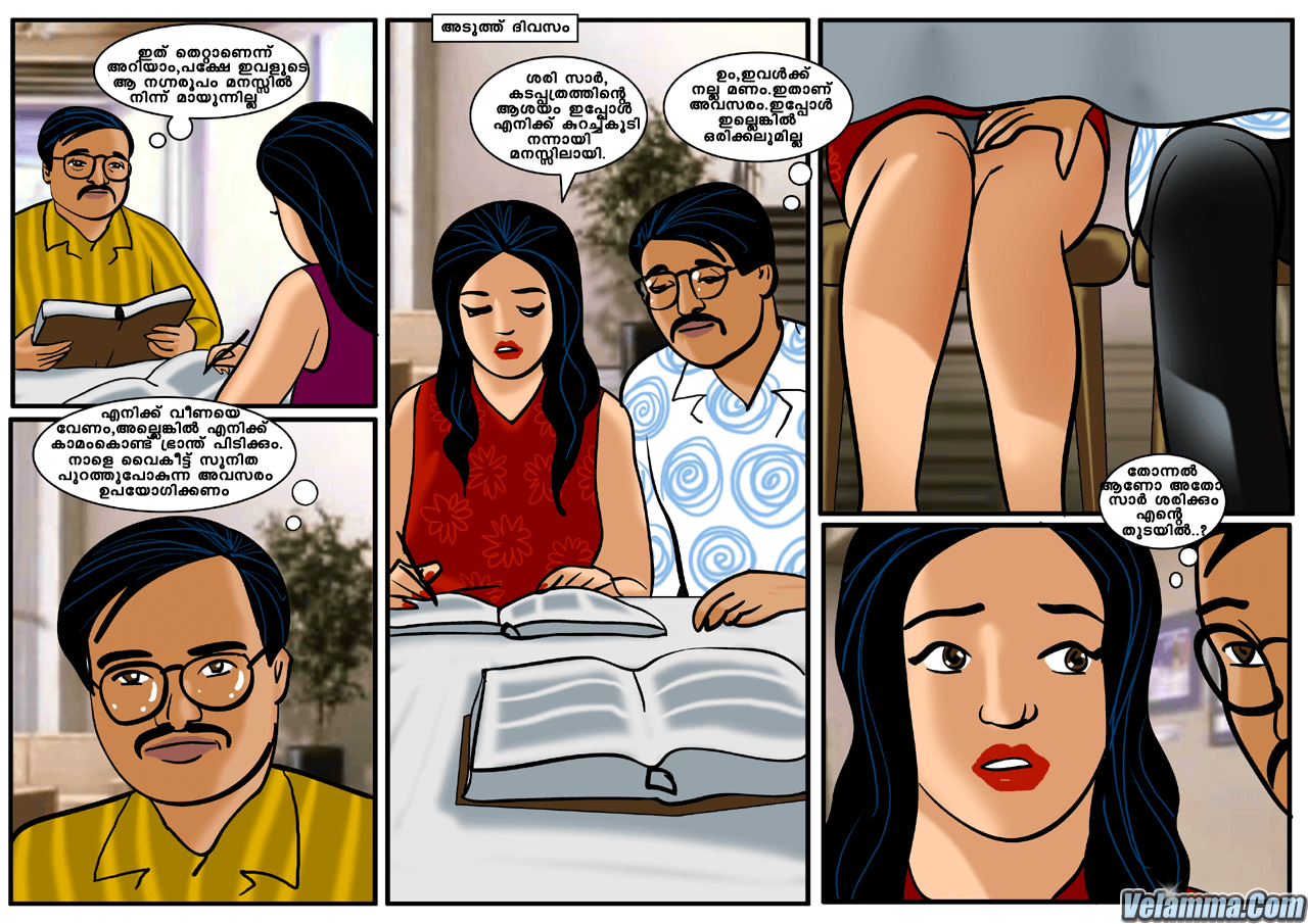 വേലമ്മ അതിനു തയ്യാറാകുമോ ഇല്ലയോ എന്ന് അറിയാൻ ഈ കമ്പി കാർട്ടൂണിന്റെ പൂർണ്ണ രൂപം ഇംഗ്ലീഷ് എപ്പിസോഡിൽ ഇവിടെ ക്ലിക്ക് ചെയ്ത് വായിക്കാം.