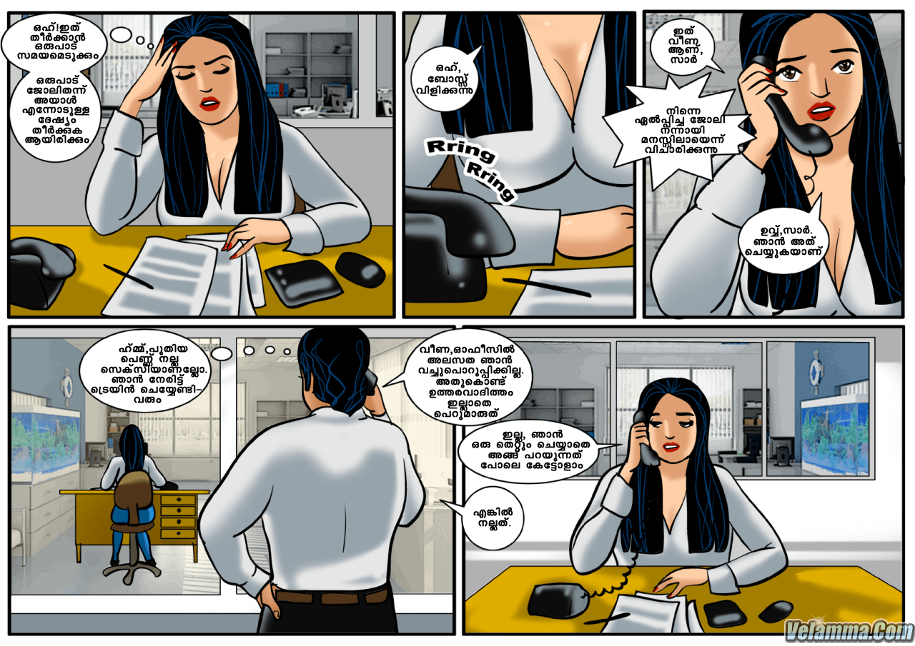 വേലമ്മ കമ്പി കാർട്ടൂണിന്റെ ഈ പതിനൊന്നാമത്തെ അധ്യായത്തിൽ തന്റെ ഭർത്താവ് രമേശിന്റെ ഓഫീസിലെ ശാലിനിയുമായുള്ള പരസ്ത്രീ ബന്ധം വേലമ്മ ആ സ്ത്രീയുടെ ഭർത്താവിൽ നിന്ന് ഒരു ഞെട്ടലോടെ അറിയുന്നു.