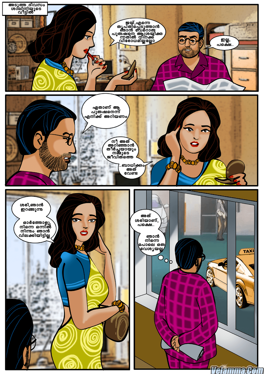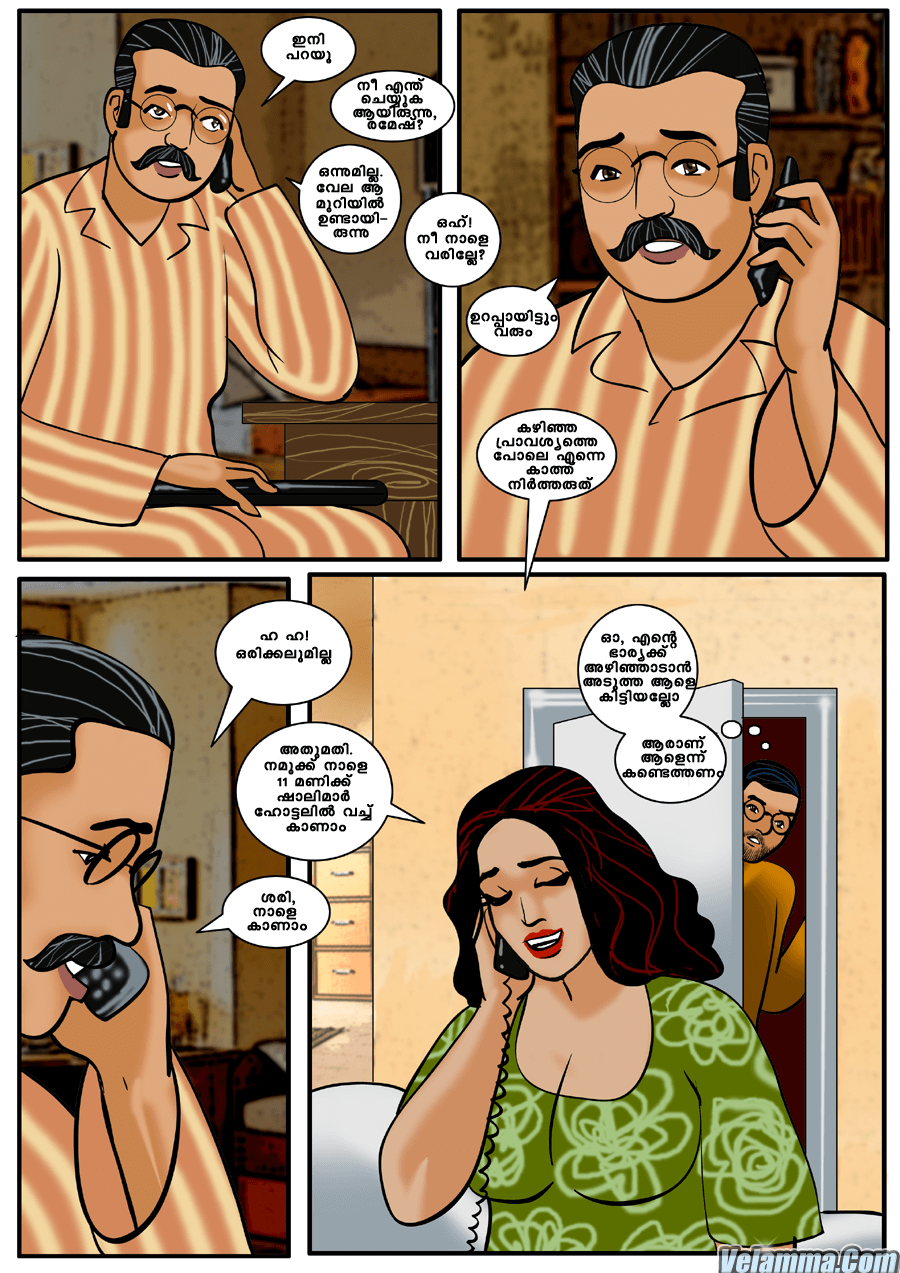വേലമ്മ കമ്പി കാർട്ടൂണിന്റെ ഈ പതിനൊന്നാമത്തെ അധ്യായത്തിൽ തന്റെ ഭർത്താവ് രമേശിന്റെ ഓഫീസിലെ ശാലിനിയുമായുള്ള പരസ്ത്രീ ബന്ധം വേലമ്മ ആ സ്ത്രീയുടെ ഭർത്താവിൽ നിന്ന് ഒരു ഞെട്ടലോടെ അറിയുന്നു.